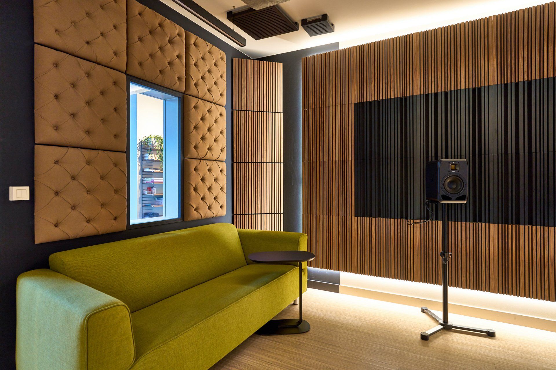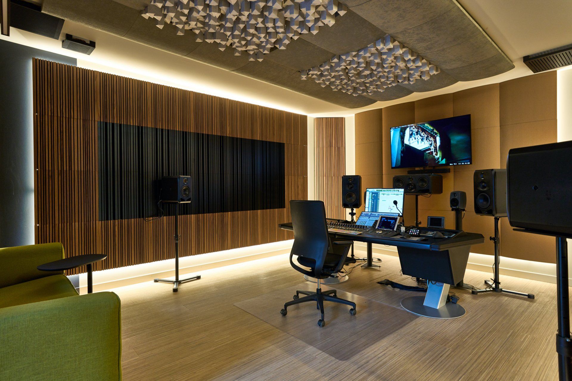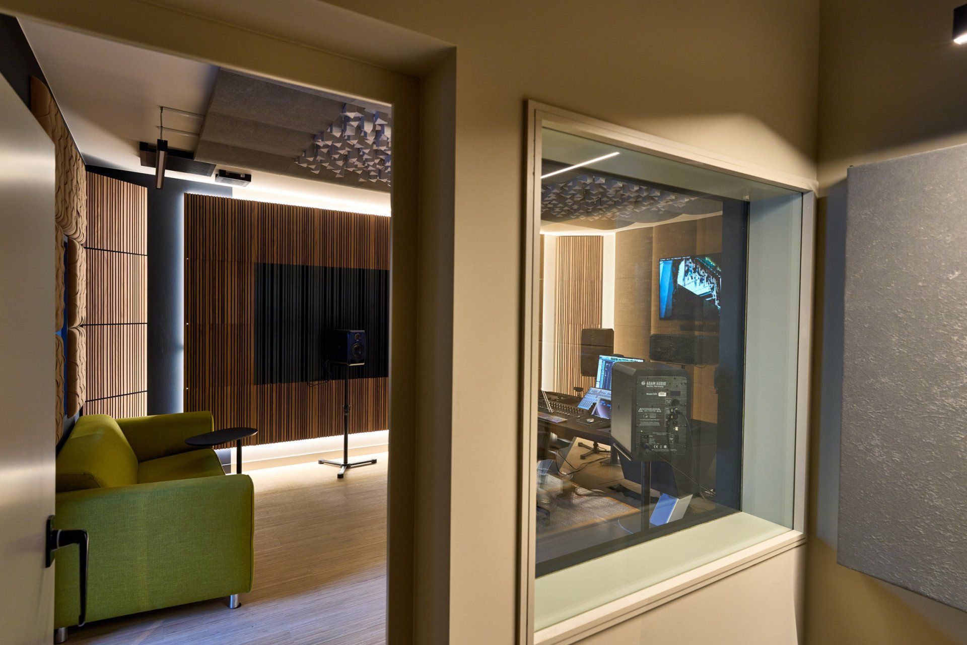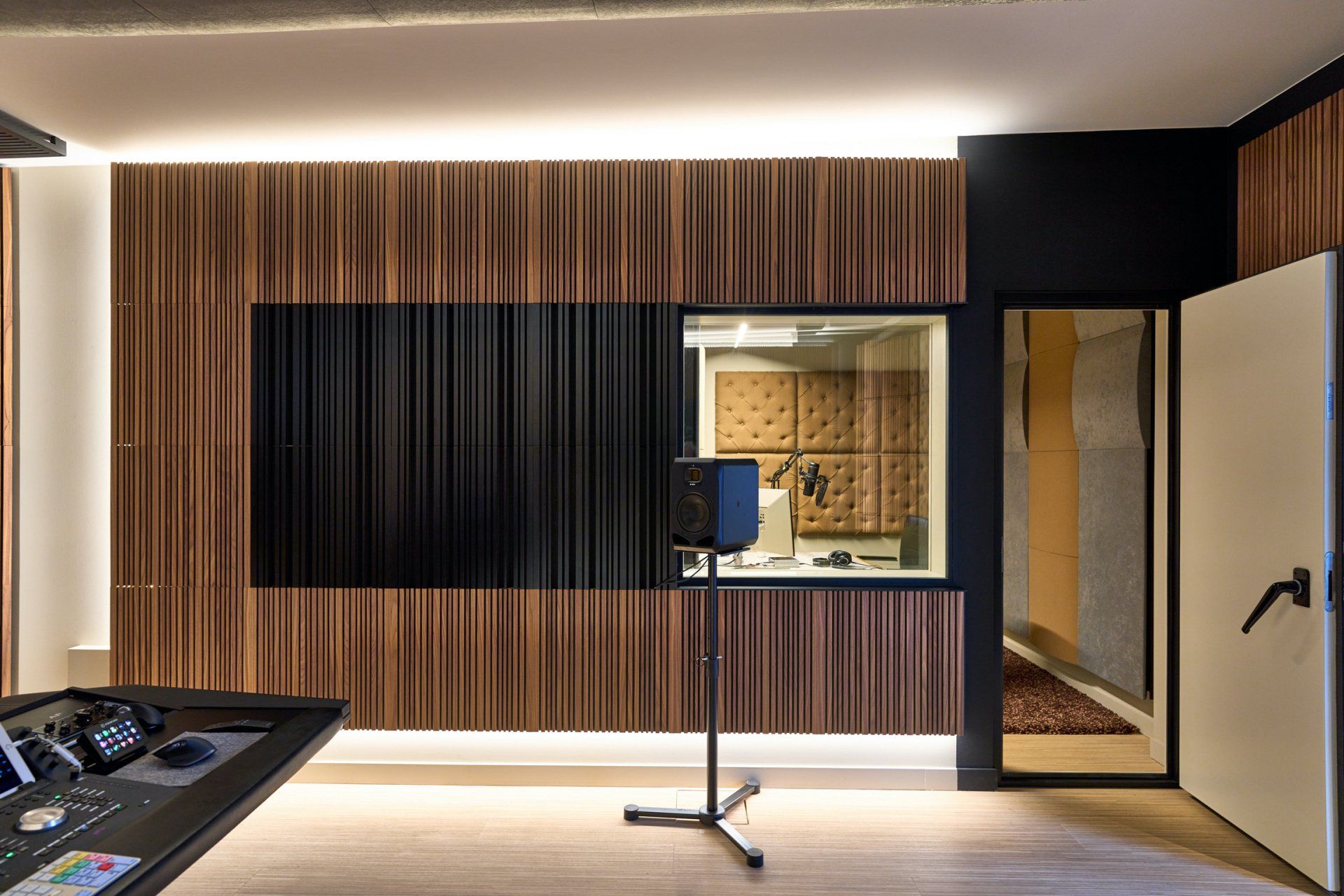 Een "box in the box" voicebooth en een mixagestudio voor zowel 2.0 stereo als 5.1 surround geluidsafwerking