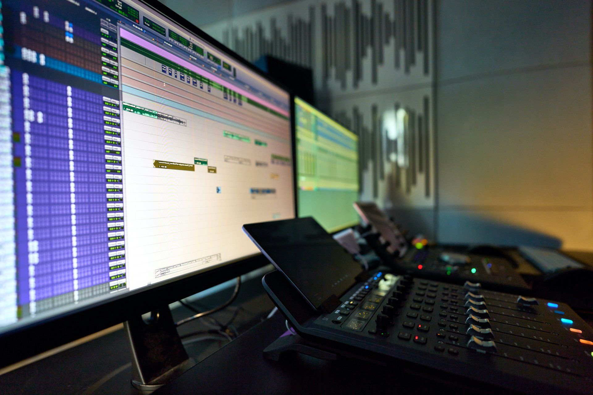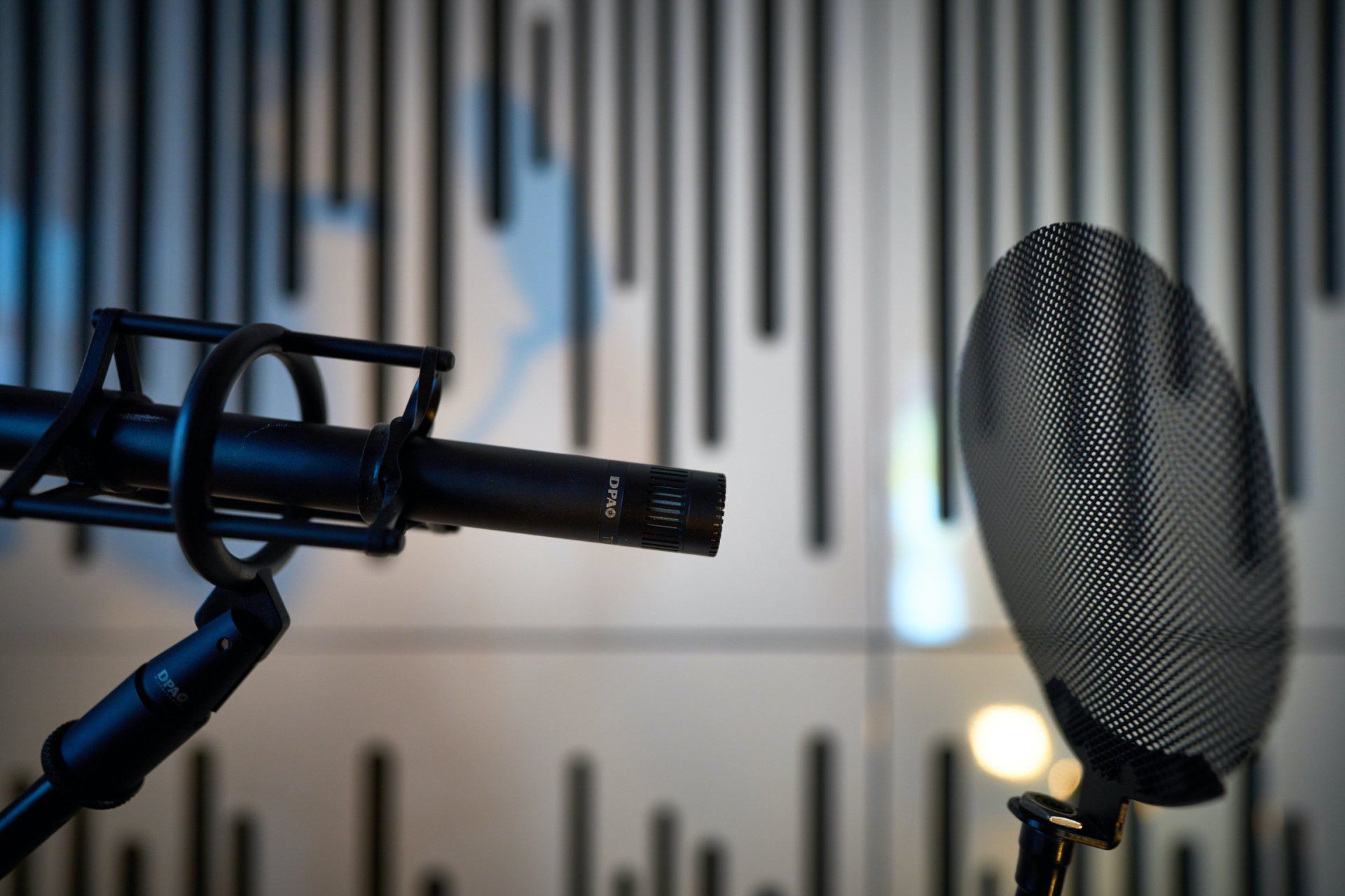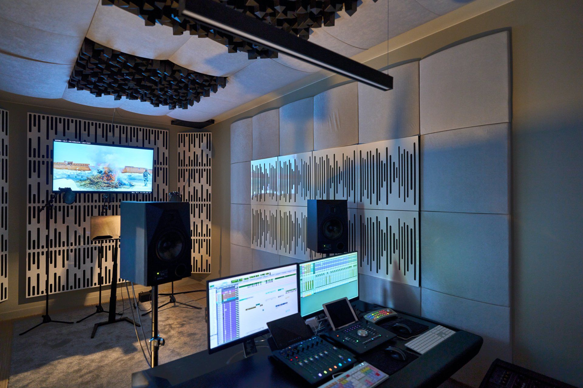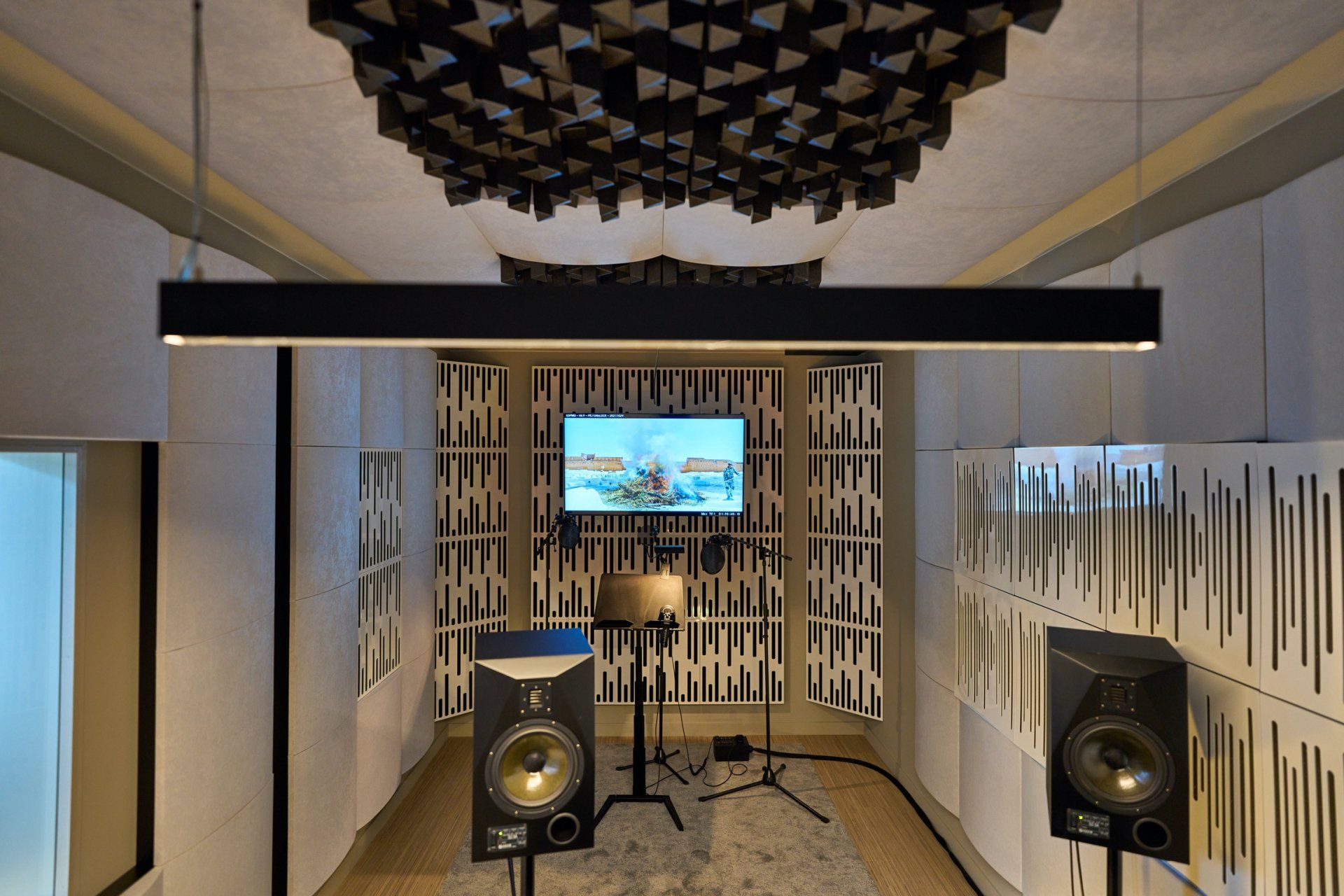 Our "box in the box" dubbing/recording studio. In here, several voice recordings can take place simultaneously.